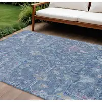 8' Taupe Brown And Blue Round Patchwork Washable Indoor Outdoor Area Rug