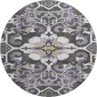 8' Taupe Brown And Gray Abstract Washable Round Rug With UV Protection