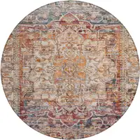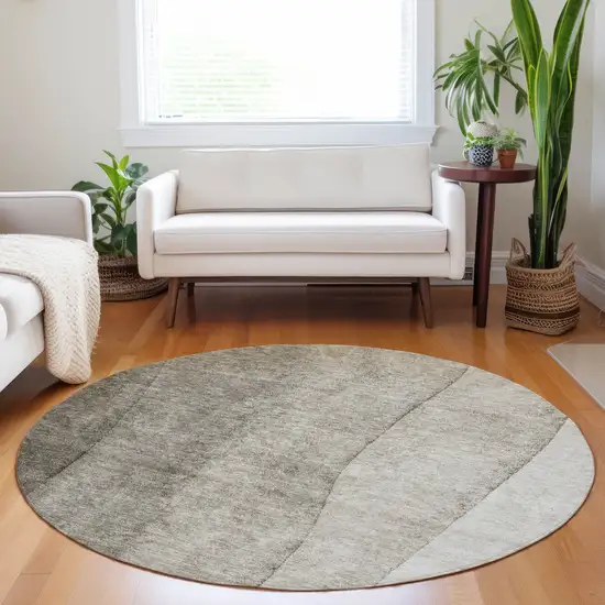 8' Taupe Brown And Ivory Round Ombre Washable Indoor Outdoor Area Rug