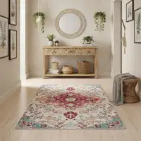 8' Taupe Copper And Beige Abstract Washable Round Rug With UV Protection
