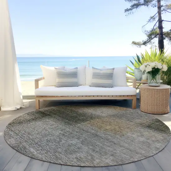 8' Taupe Gray And Beige Round Abstract Washable Indoor Outdoor Area Rug
