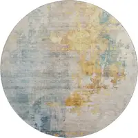 8' Taupe Ivory And Gold Striped Washable Round Rug With UV Protection