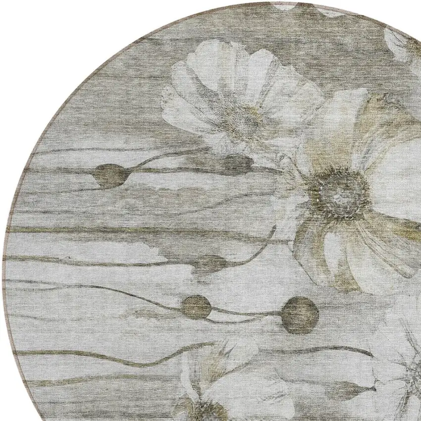 8' Taupe Ivory And Tan Round Floral Washable Indoor Outdoor Area Rug