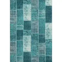 8' Teal And Aqua Floral Washable Round Rug With UV Protection