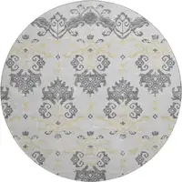 8' Teal And Ivory Abstract Washable Round Rug With UV Protection