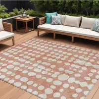 8' Teal Blue And Gray Round Striped Washable Indoor Outdoor Area Rug