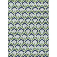 8' Teal Blue And Ivory Round Abstract Washable Indoor Outdoor Area Rug