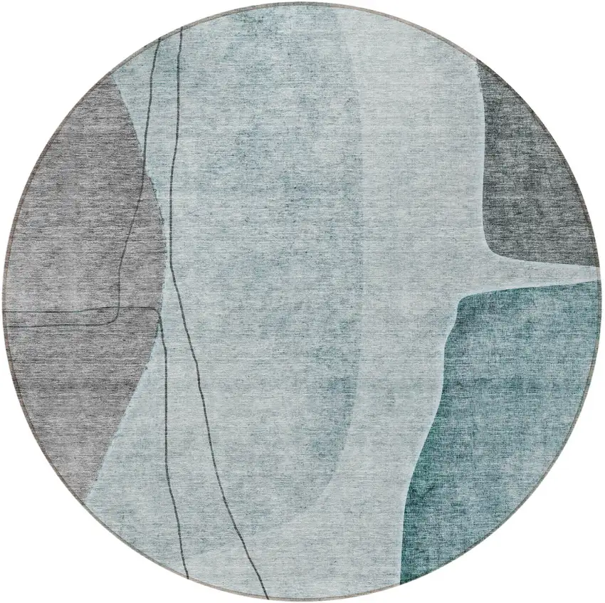 This 8-foot teal blue aqua and gray round abstract washable indoor outdoor area rug, is a great way to add warmth to a room. This geometric round shaped rug features a abstract pattern in teal blue, aqua, and gray that combines a good looking print with a unique and updated shape. The mix of shape, color, and design gives this rug refreshing visual interest. Ideal for outdoor spaces or high traffic areas with kids and pets, this rug is made from heavy duty polyester that is stain resistant to help repel water, dirt, and stains. Versatile in use, durable, and easy to maintain, this rug is an ideal solution to add a decorative and inviting touch to your indoor or outdoor space. 96-inch h x 96-inch w x 0.19-inch d.