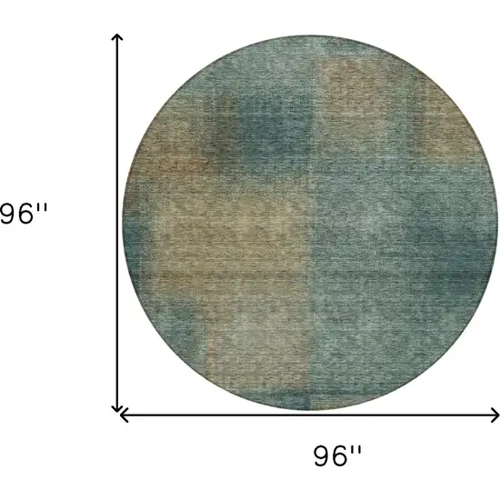 Add great coloration and comfortable texture to your space with this 8-foot teal blue brown and taupe round abstract washable indoor outdoor area rug. This geometric round shaped rug features a abstract pattern in teal blue, brown, and taupe that combines a good looking print with a unique and updated shape. The mix of shape, color, and design gives this rug refreshing visual interest. Ideal for outdoor spaces or high traffic areas with kids and pets, this rug is made from heavy duty polyester that is stain resistant to help repel water, dirt, and stains. Versatile in use, durable, and easy to maintain, this rug is an ideal solution to add a decorative and inviting touch to your indoor or outdoor space. 96-inch h x 96-inch w x 0.19-inch d.