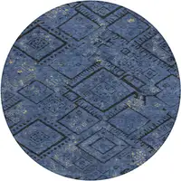 Add some artistry to your room with this 8-foot teal blue chocolate and beige round geometric washable indoor outdoor area rug. This geometric round shaped rug features a geometric pattern in teal blue, chocolate, and beige that combines a good looking print with a unique and updated shape. The mix of shape, color, and design gives this rug refreshing visual interest. Ideal for outdoor spaces or high traffic areas with kids and pets, this rug is made from heavy duty polyester that is stain resistant to help repel water, dirt, and stains. Makes a great way to dress up your patio, porch, or poolside, but also works well as a durable and easy to maintain option in the kitchen, family room, or mudroom. 96.00-inch h x 96.00-inch w x 0.19-inch d.