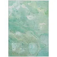 8' Teal Blue Gray And Ivory Round Plaid Washable Indoor Outdoor Area Rug