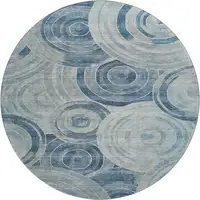 8' Teal Green And Ivory Striped Washable Round Rug With UV Protection