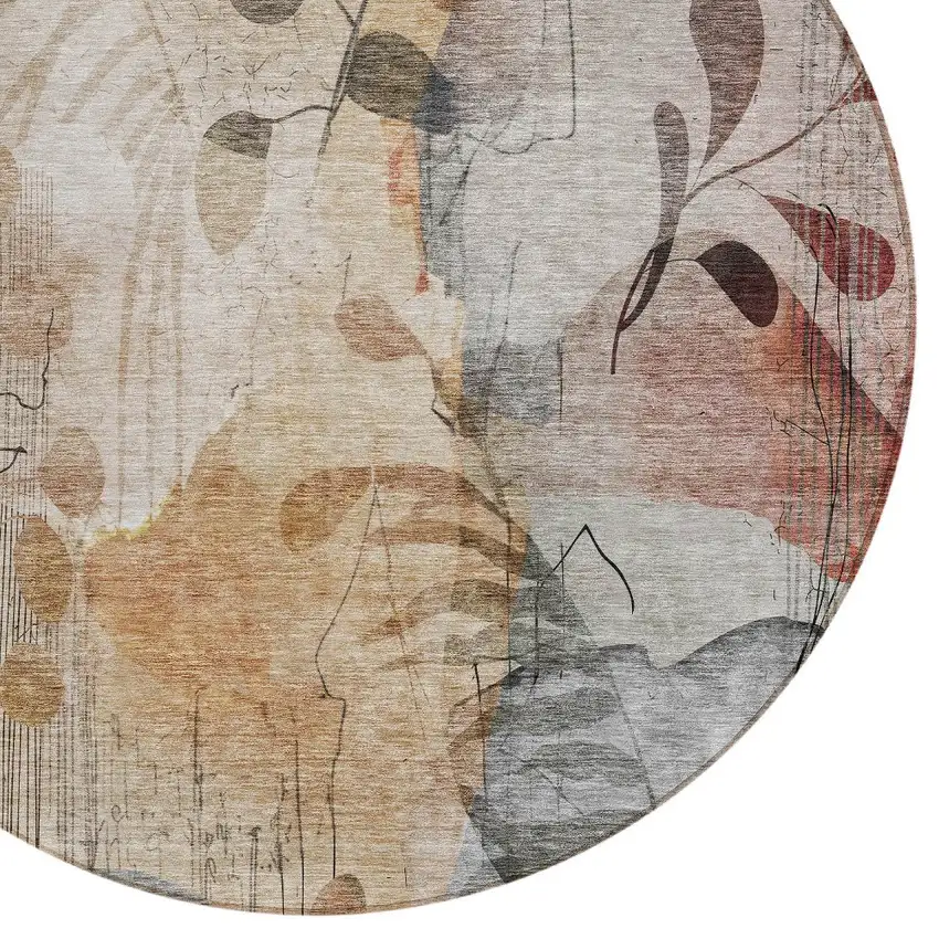 Set an inviting tone in your space with this 8-foot terra cotta copper and beige round floral washable indoor outdoor area rug. This geometric round shaped rug features a floral pattern in terra cotta, copper, and beige that combines a good looking print with a unique and updated shape. The mix of shape, color, and design gives this rug refreshing visual interest. Ideal for outdoor spaces or high traffic areas with kids and pets, this rug is made from heavy duty polyester that is stain resistant to help repel water, dirt, and stains. Versatile in use, durable, and easy to maintain, this rug is an ideal solution to add a decorative and inviting touch to your indoor or outdoor space. 96-inch h x 96-inch w x 0.19-inch d.