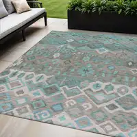 This 8-foot terra cotta copper and green round abstract washable indoor outdoor area rug, is a great way to add warmth to a room. This geometric round shaped rug features a abstract pattern in terra cotta, copper, and green that combines a good looking print with a unique and updated shape. The mix of shape, color, and design gives this rug refreshing visual interest. Ideal for outdoor spaces or high traffic areas with kids and pets, this rug is made from heavy duty polyester that is stain resistant to help repel water, dirt, and stains. Versatile in use, durable, and easy to maintain, this rug is an ideal solution to add a decorative and inviting touch to your indoor or outdoor space. 96-inch h x 96-inch w x 0.19-inch d.