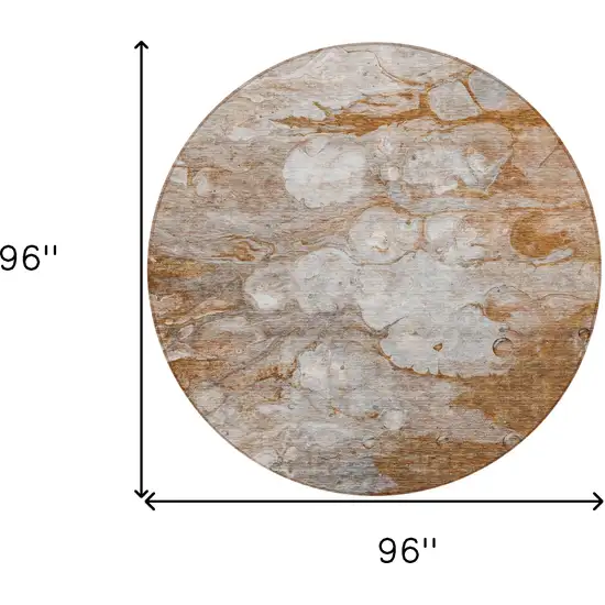 This 8-foot terra cotta gray and silver round abstract washable indoor outdoor area rug, is a great way to add warmth to a room. This geometric round shaped rug features a abstract pattern in terra cotta, gray, and silver that combines a good looking print with a unique and updated shape. The mix of shape, color, and design gives this rug refreshing visual interest. Ideal for outdoor spaces or high traffic areas with kids and pets, this rug is made from heavy duty polyester that is stain resistant to help repel water, dirt, and stains. Makes a great way to dress up your patio, porch, or poolside, but also works well as a durable and easy to maintain option in the kitchen, family room, or mudroom. 96-inch h x 96-inch w x 0.19-inch d.