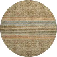 Add great coloration and comfortable texture to your space with this 8-foot turquoise and beige damask washable round rug with uv protection. Ideal for spaces with kids and pets, this rug is stain resistant to help repel dirt and spilled liquids. Built to last, this rug crafted from polyester fibers is known for its durability and long lasting appeal. Rugs are a great way to showcase your style, hide imperfections, warm your home and reduce noise. This larger sized, transitional styled rug is ready to create a focal point or statement piece in your room. 96.00-inch h x 96.00-inch w x 0.39-inch d.