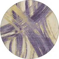 8' Wheat And Ivory Round Geometric Washable Indoor Outdoor Area Rug