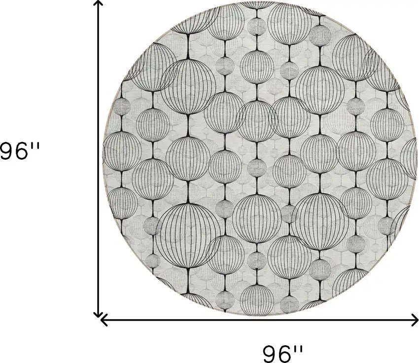 8' White Gray And Silver Round Geometric Washable Indoor Outdoor Area Rug