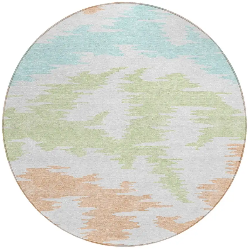 Add great coloration and comfortable texture to your space with this 8-foot white sky blue and artichoke green round abstract washable indoor outdoor area rug. This geometric round shaped rug features a abstract pattern in white, sky blue, and artichoke green that combines a good looking print with a unique and updated shape. The mix of shape, color, and design gives this rug refreshing visual interest. Ideal for outdoor spaces or high traffic areas with kids and pets, this rug is made from heavy duty polyester that is stain resistant to help repel water, dirt, and stains. Versatile in use, durable, and easy to maintain, this rug is an ideal solution to add a decorative and inviting touch to your indoor or outdoor space. 96-inch h x 96-inch w x 0.19-inch d.