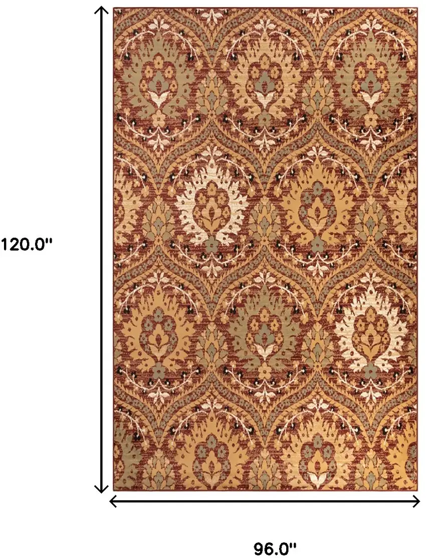 Uplift your interior design with this beautiful area rug featuring a floral design in rich tones of red, olive, and gold. Measuring 8' x 10', it offers both impeccable style and functionality, and is resistant to common stains.