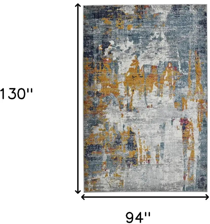 8' x 11' Blue and Orange Abstract Power Loom Area Rug