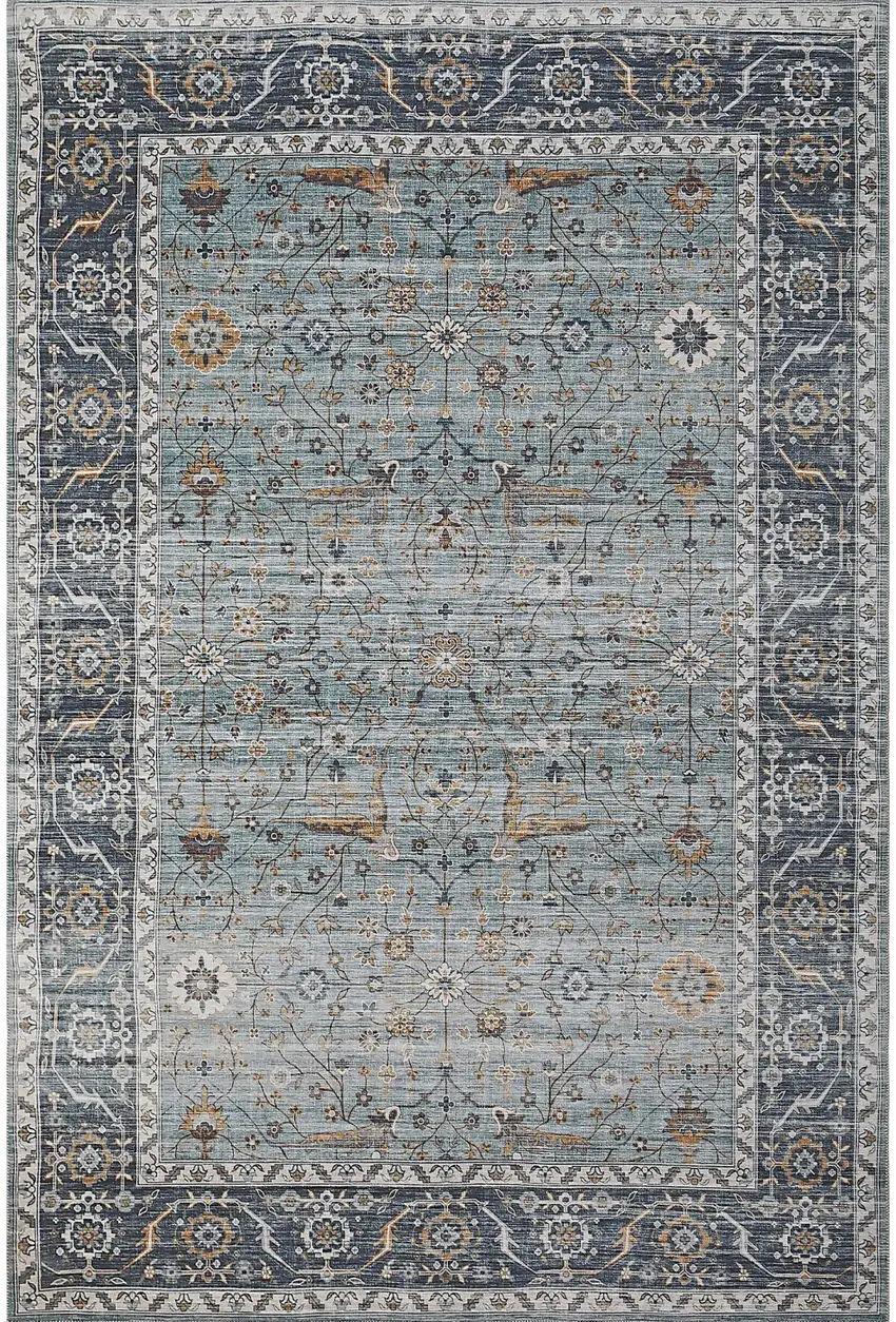 Here's an area rug that combines elegance with resilience effectively. Featuring a Sage Oriental design, it's built to resist stains and preserve its charming look for a long time.