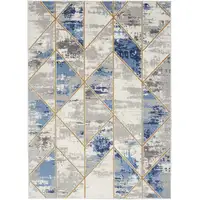 8' X 8' Navy Blue And Ivory Geometric Washable Round Rug With UV Protection