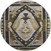 8' Yellow And Ivory Abstract Geometric Washable Round Rug With UV Protection