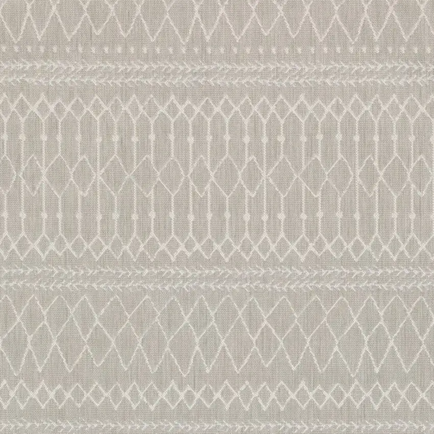 A smart blend of gray and ivory lends a refined touch to any space with this geometric rug. Built for both indoor and outdoor use, it promises durability and easy maintenance.