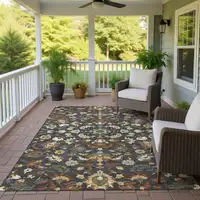 9' Black And Gray Round Medallion Indoor Outdoor Area Rug