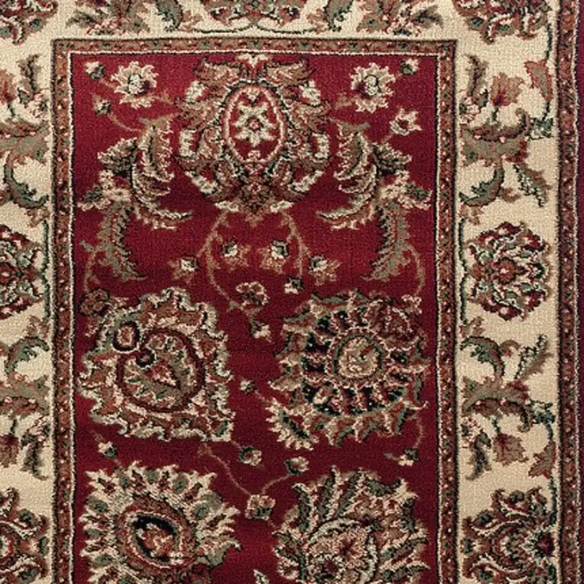 9' Red And Ivory Oriental Runner Rug