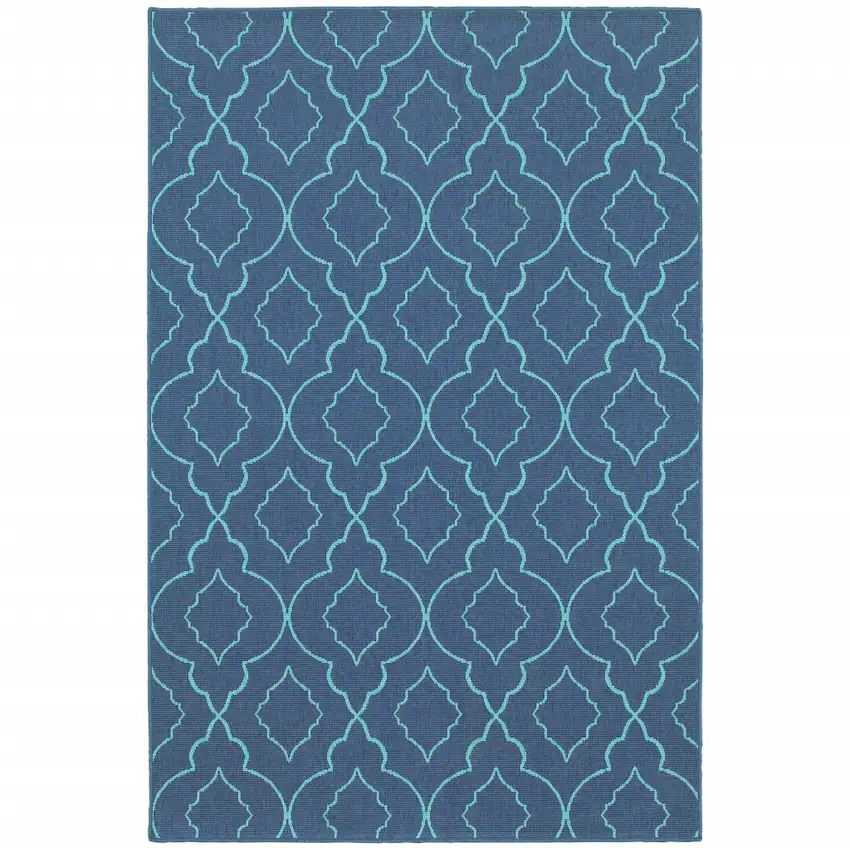 9' X 13' Navy Geometric Stain Resistant Indoor Outdoor Area Rug