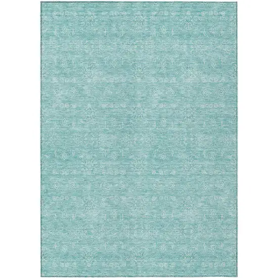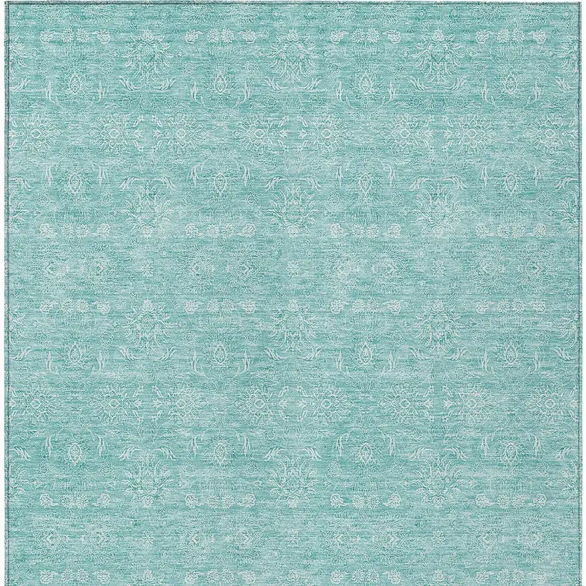 Aqua And Ivory Floral Washable Indoor Outdoor Area Rug