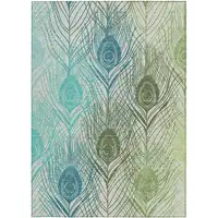 Aqua And Ivory Geometric Washable Indoor Outdoor Area Rug