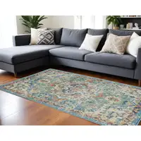 Aqua And Ivory Medallion Washable Area Rug With UV Protection