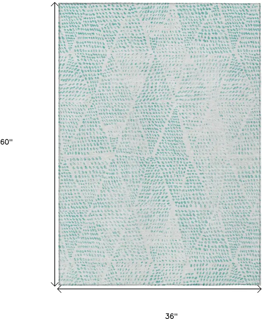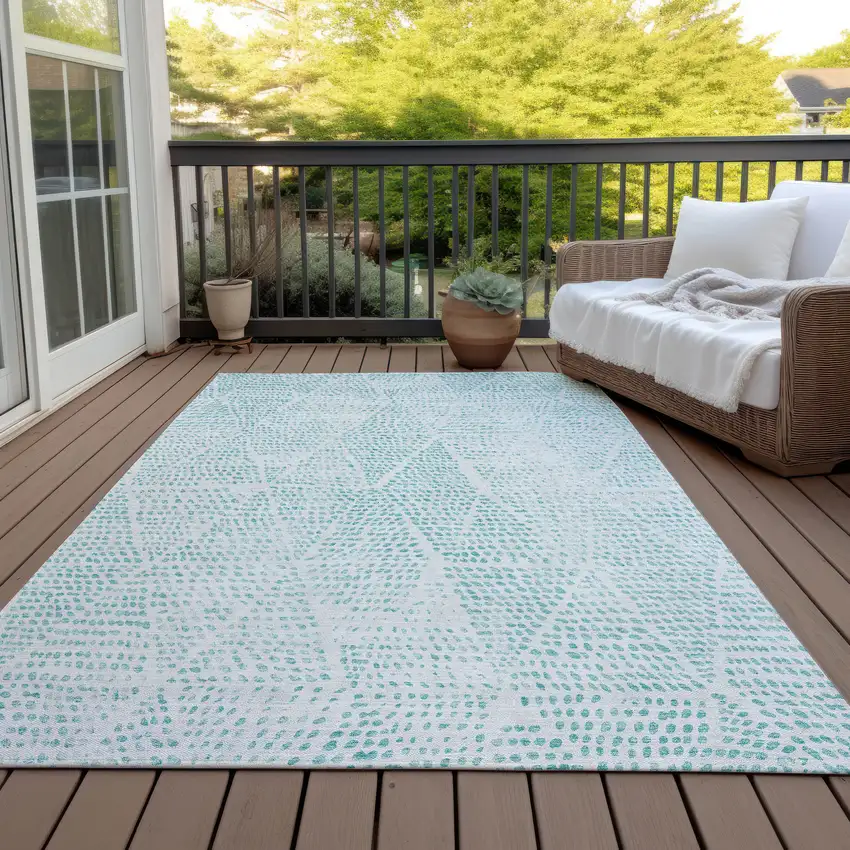 Aqua Geometric Washable Non Skid Indoor Outdoor Area Rug