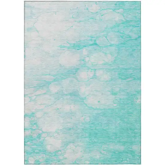 Aqua Ivory And Teal Blue Abstract Washable Indoor Outdoor Area Rug