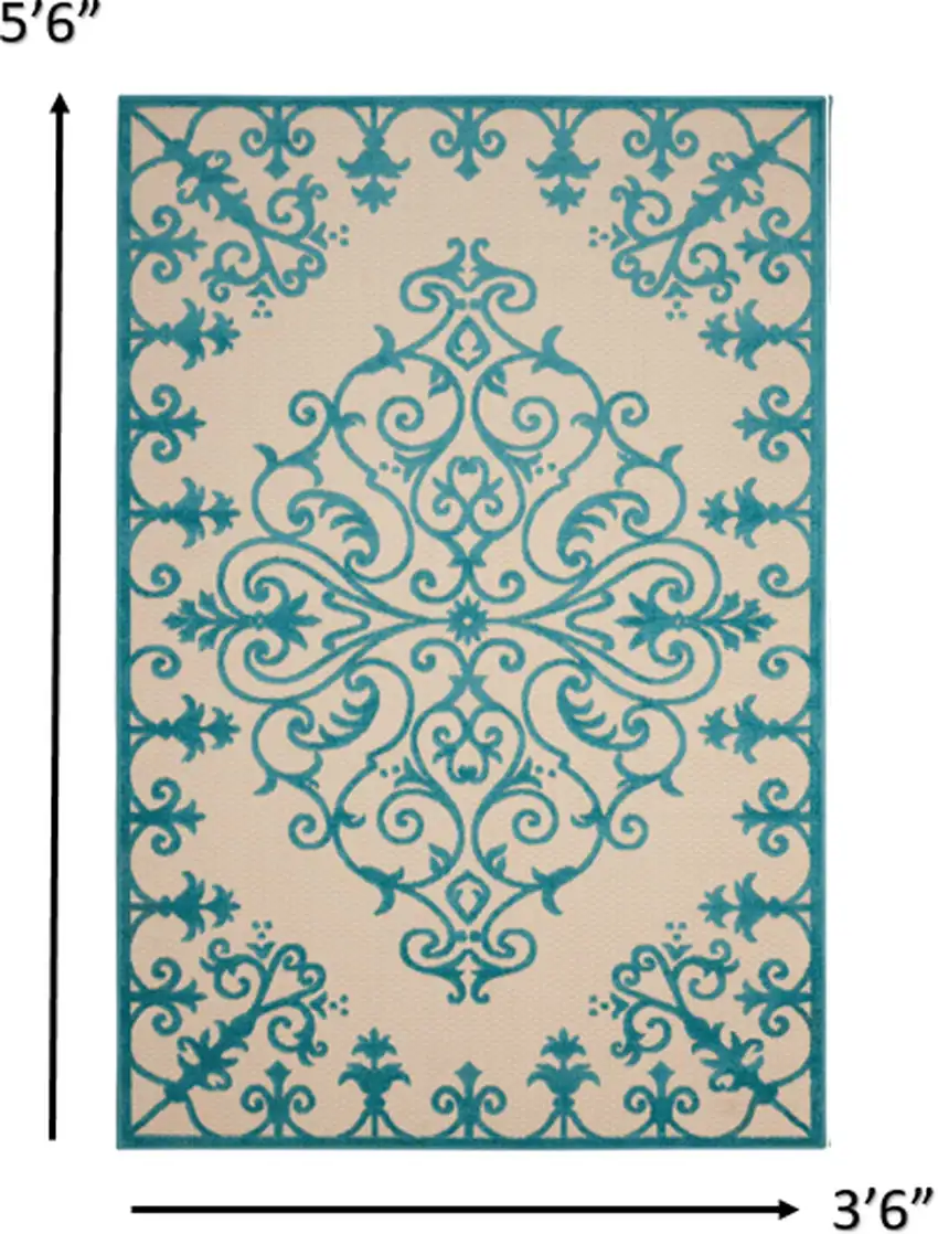 As you step onto this rug's soft yet durable surface, you'll instantly feel the comfort underfoot. Whether you're walking barefoot or lounging on the rug with friends and family, its luxurious texture will provide an unparalleled level of comfort. The Aqua Medallion Indoor/Outdoor Area Rug is not just a stylish addition to your space; it's an investment in your comfort and well-being.