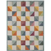 Aqua Mint Green And Silver Geometric Washable Indoor Outdoor Area Rug