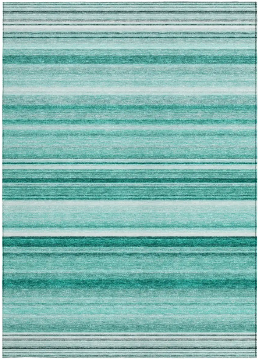Aqua Striped Washable Non Skid Indoor Outdoor Area Rug