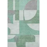 Aqua Teal And Ivory Damask Washable Area Rug With UV Protection