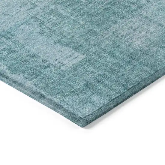 Aqua Teal Blue And Gray Abstract Washable Indoor Outdoor Area Rug