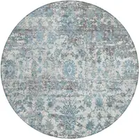 Aqua Teal Blue And Ivory Floral Washable Indoor Outdoor Area Rug
