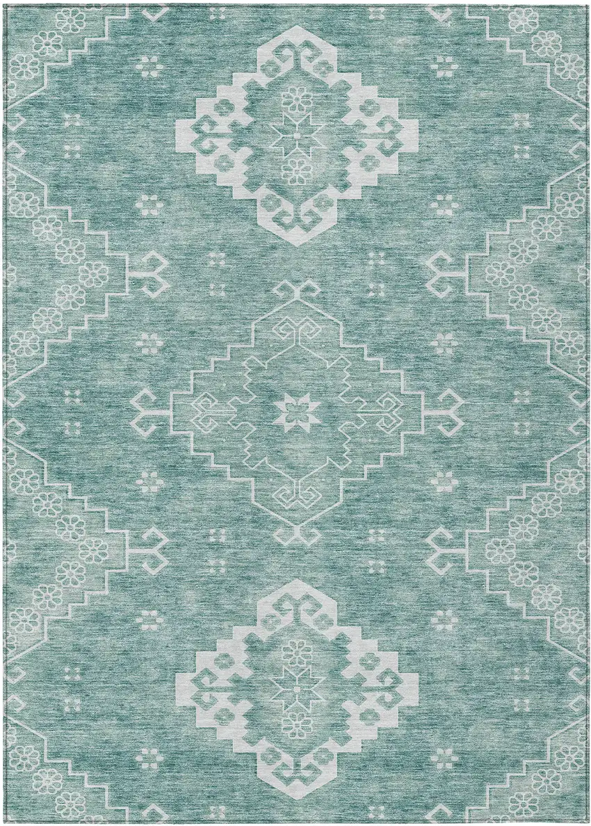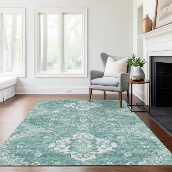 This 3-foot x 5-foot aqua teal blue and ivory medallion washable indoor outdoor area rug, is a great way to add warmth to a room. This rectangle shaped rug features a medallion design that will work well both indoors or out. A classic shape marries with good looking design for your living room, hall, bedroom, porch, patio, or poolside. Ideal for outdoor spaces or high traffic areas with kids and pets, this rug is made from heavy duty polyester that is stain resistant to help repel water, dirt, and stains. Versatile in use, durable, and easy to maintain, this rug is an ideal solution to add a decorative and inviting touch to your indoor or outdoor space. 36-inch h x 60-inch w x 0.19-inch d.