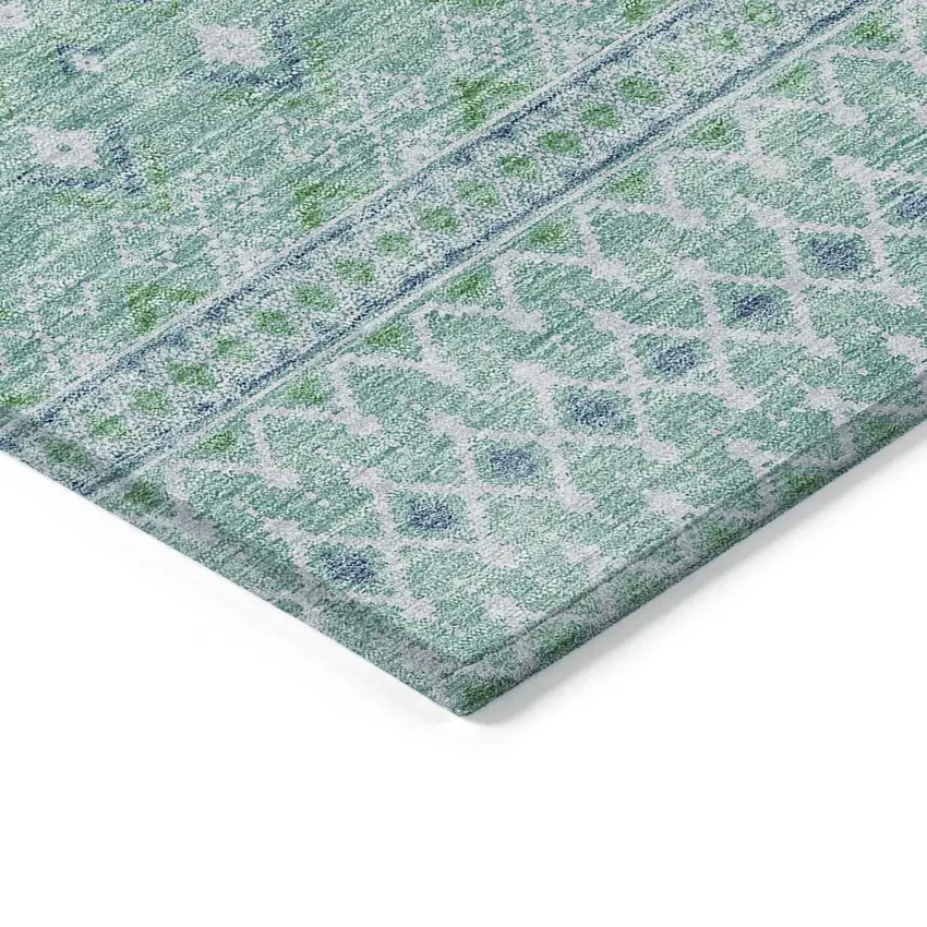 This 8-foot x 10-foot aqua teal blue and ivory tribal washable indoor outdoor area rug, is a great way to add warmth to a room. This rectangle shaped rug features a tribal design that will work well both indoors or out. A classic shape marries with good looking design for your living room, hall, bedroom, porch, patio, or poolside. Ideal for outdoor spaces or high traffic areas with kids and pets, this rug is made from heavy duty polyester that is stain resistant to help repel water, dirt, and stains. Versatile in use, durable, and easy to maintain, this rug is an ideal solution to add a decorative and inviting touch to your indoor or outdoor space. 96-inch h x 120-inch w x 0.19-inch d.