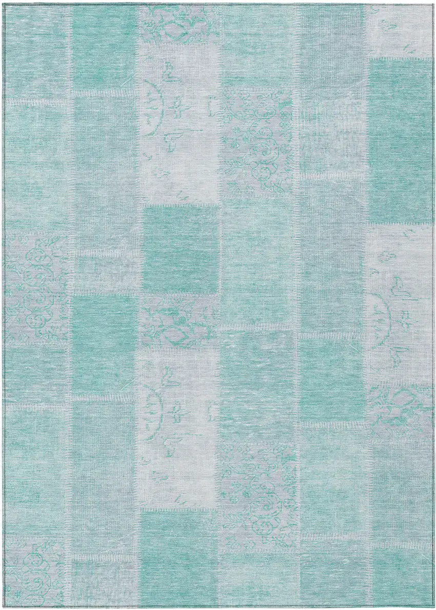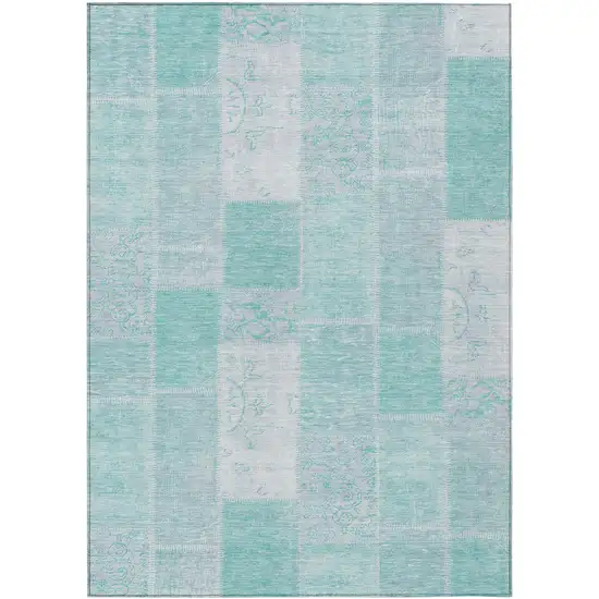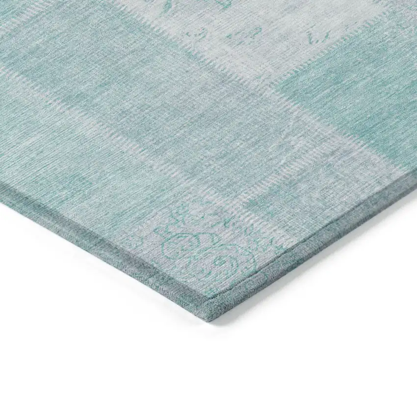 Aqua Teal Blue And Silver Patchwork Washable Indoor Outdoor Area Rug