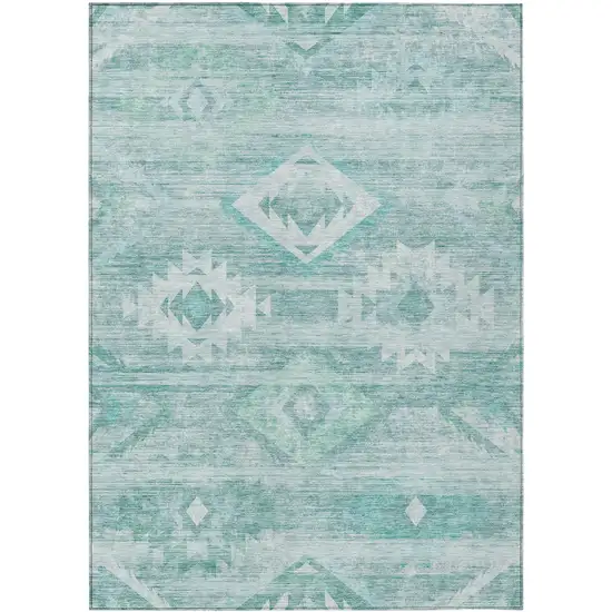This 10-foot x 14-foot aqua turquoise and ivory southwestern washable indoor outdoor area rug, is a great way to add warmth to a room. This rectangle shaped rug features a southwestern design that will work well both indoors or out. A classic shape marries with good looking design for your living room, hall, bedroom, porch, patio, or poolside. Ideal for outdoor spaces or high traffic areas with kids and pets, this rug is made from heavy duty polyester that is stain resistant to help repel water, dirt, and stains. Makes a great way to dress up your patio, porch, or poolside, but also works well as a durable and easy to maintain option in the kitchen, family room, or mudroom. 120-inch h x 168-inch w x 0.19-inch d.
