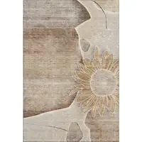 Artichoke Green And Beige Floral Washable Area Rug With UV Protection