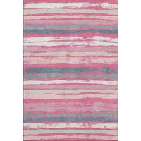 Artichoke Green And Beige Striped Washable Area Rug With UV Protection