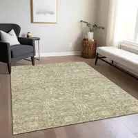 Artichoke Green And Beige Striped Washable Indoor Outdoor Area Rug